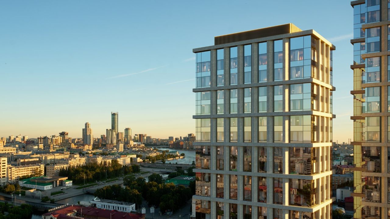 Две башни — 21 и 25 этажей — объединены четырехэтажной галереей. 169 квартир со свободными планировками, средней площадью в 128 м² и высотой потолков до 3,3 метра напоминают, что на Урале живут люди, привыкшие к простору.